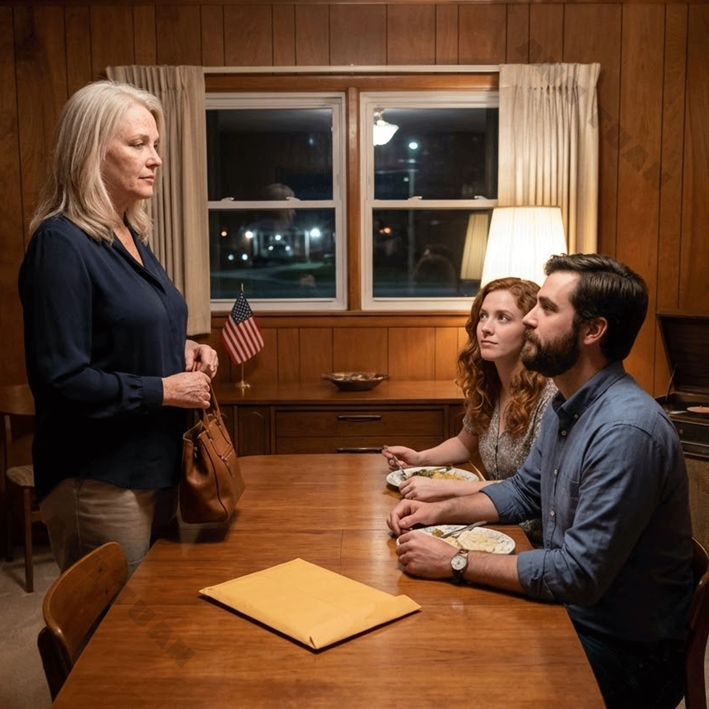 We ate in their dining room under a chandelier that I suspected cost more than my monthly grocery budget for a year. The table was set with linen napkins that felt too crisp, and the plates were heavy in a way that made you careful with your hands. Brad poured the wine like he’d watched someone do it on a show. Jenny asked me about my drive, about my appointment, about Carol next door, and for a while it was pleasant enough on the surface.