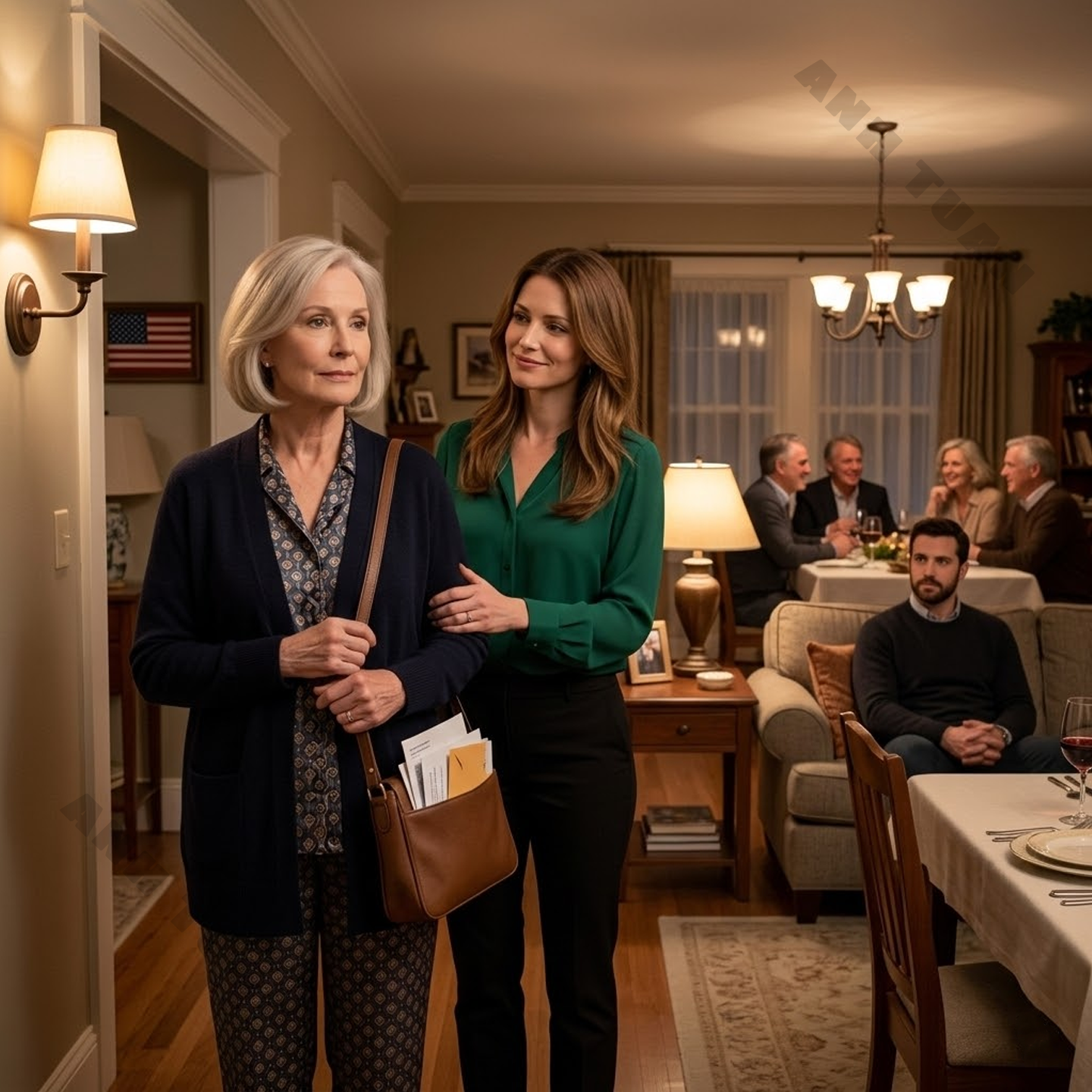 She stepped slightly to one side, not blocking the hall, but occupying it just enough to guide the direction of what happened next. There is a kind of social choreography people perform when they want to control a situation without appearing to. Diane was very good at it. She tilted her head toward the closed living room door and gave a soft little laugh.